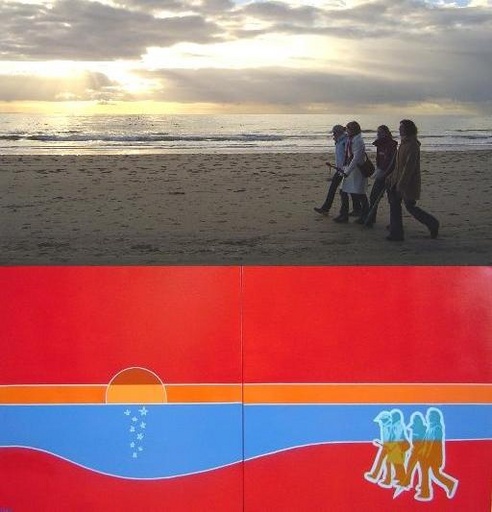 Op deze pagina zie je een voorbeeld van een tweeluik dat in opdracht is gemaakt. De foto erboven is de basis voor het werk geweest. Het schilderij is gemaakt met spuitlak (hoogglans) en verfstiften. Voor de figuren is gebruik gemaakt van een minutieus gesneden sjabloon (één laag). De drager is katoendoek, gespannen op houten raam. De zijkanten zijn meegeschilderd.