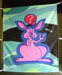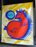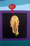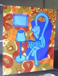 2005Vrij om dik te zijn. Spuitbusverf op doek. Gemaakt voor het Utrechtse bevrijdingsfestival 2005. Naar een tekening van Roger Abrahams.